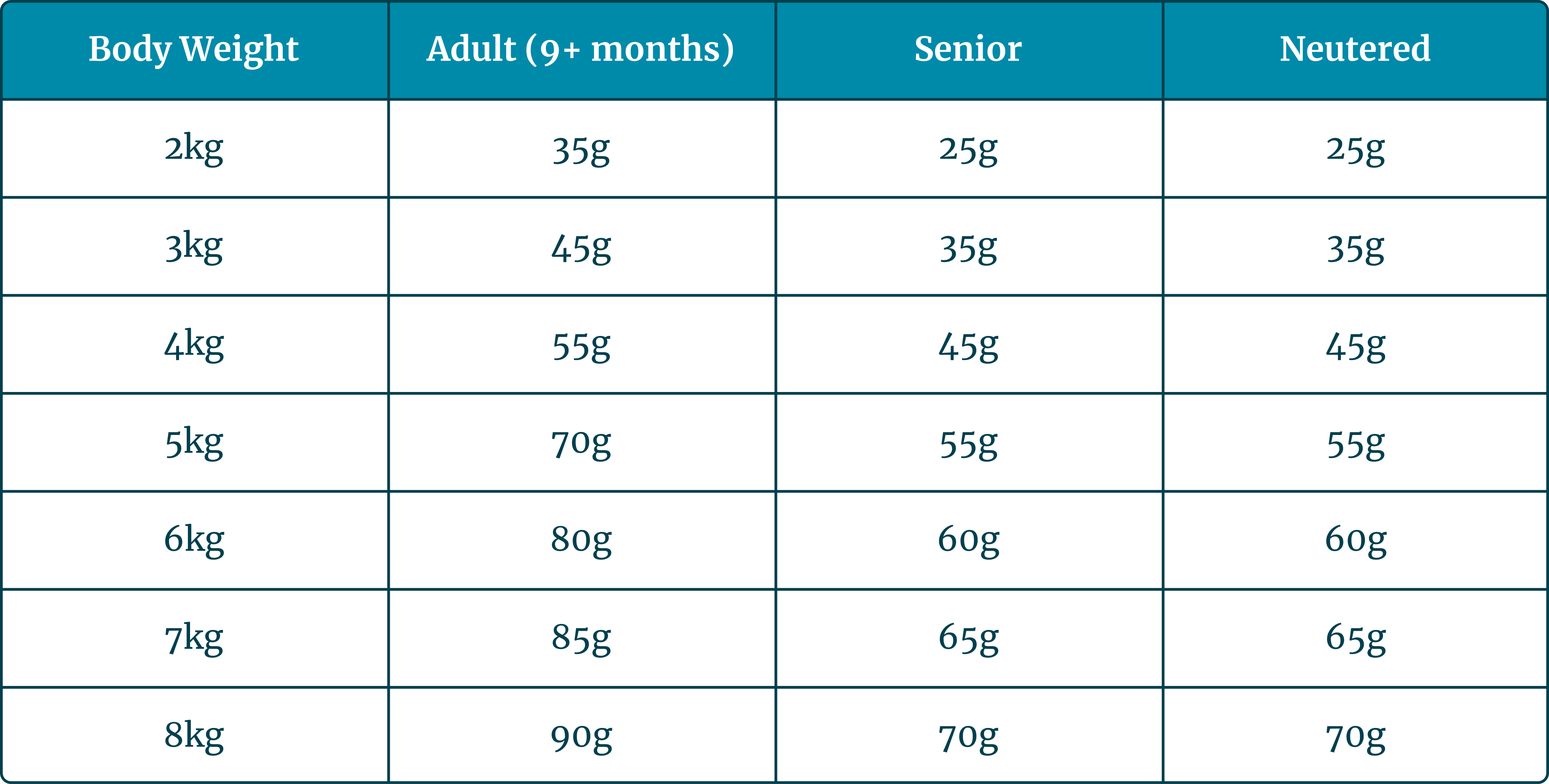 Not sure how much to feed your cat? Use our Adult Cat Feeding Guide to find the perfect amount based on your cat's weight.
