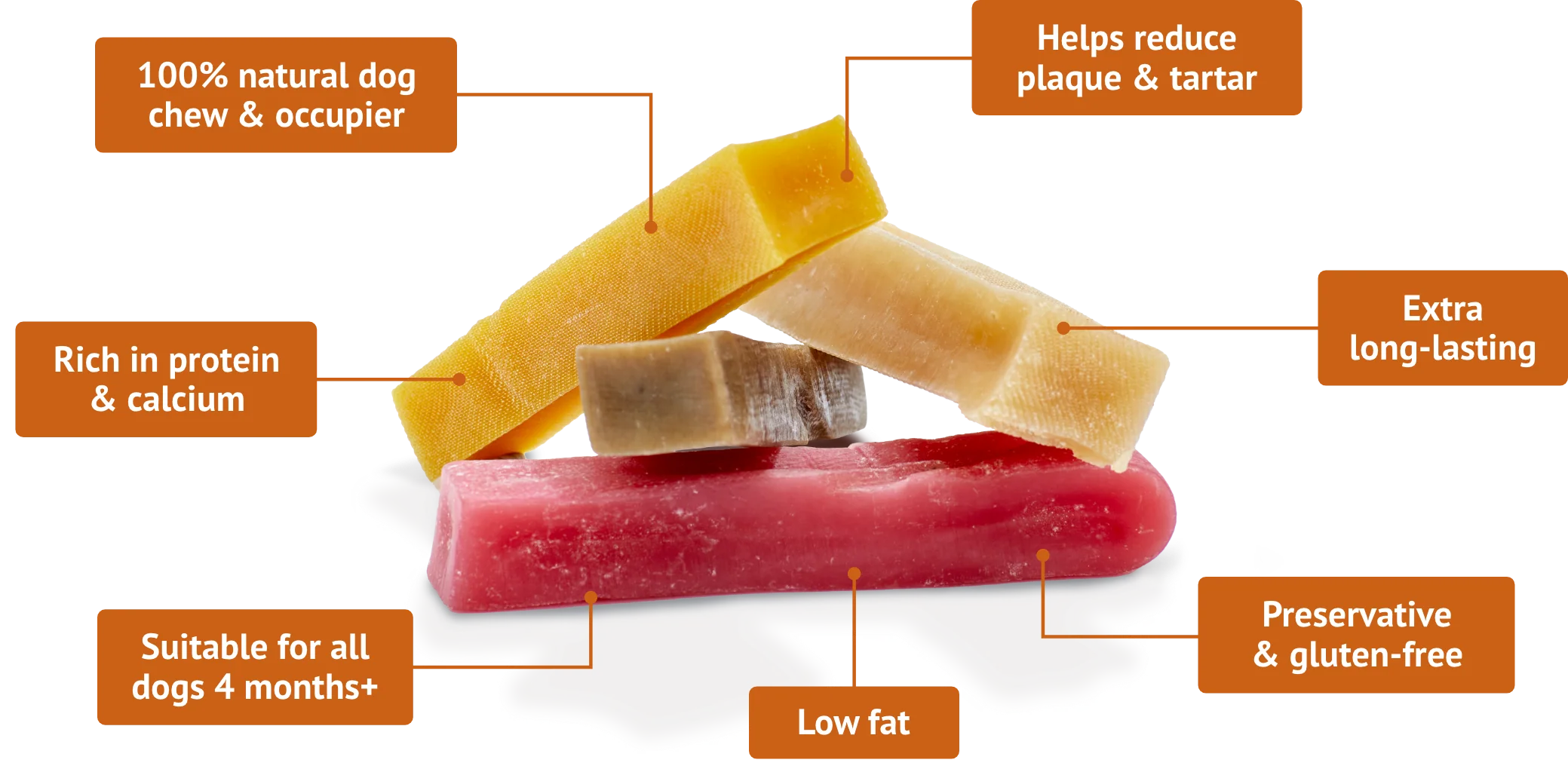 We've teamed up with YAKERS to bring you delicious dog chews, made with 100% natural ingredients. They're chewy, long-lasting and perfect for keeping your dog satisfied. Discover the full range below.