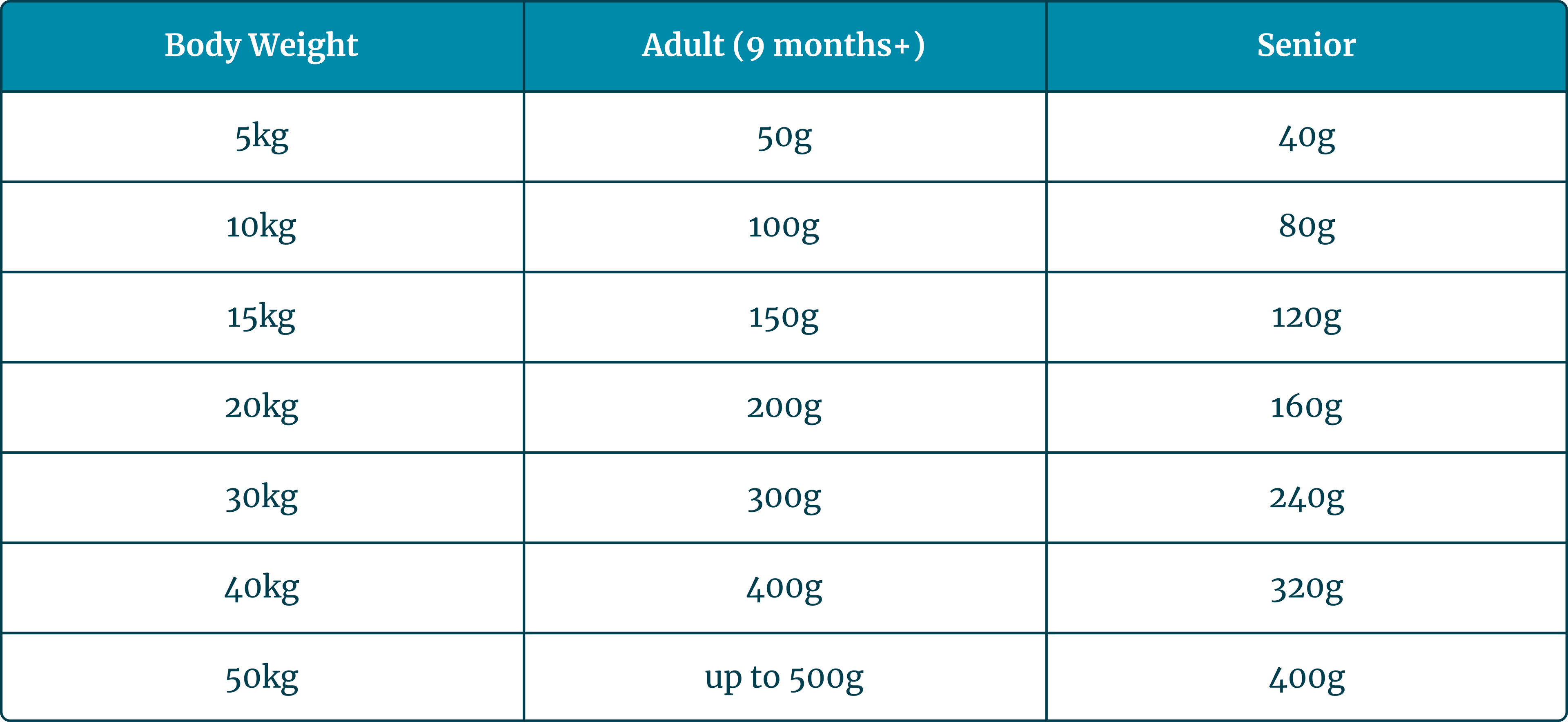 Not sure how much to feed your dog each day? Use our Adult Feeding Guide to find the perfect amount based on your dog's weight.