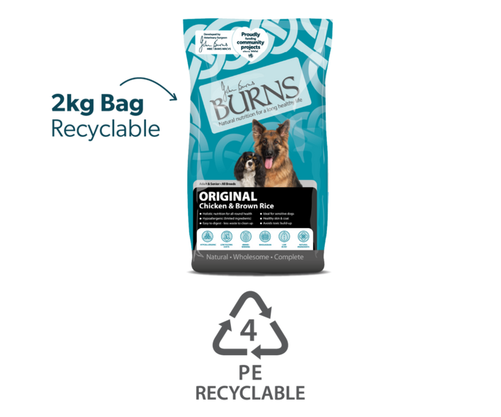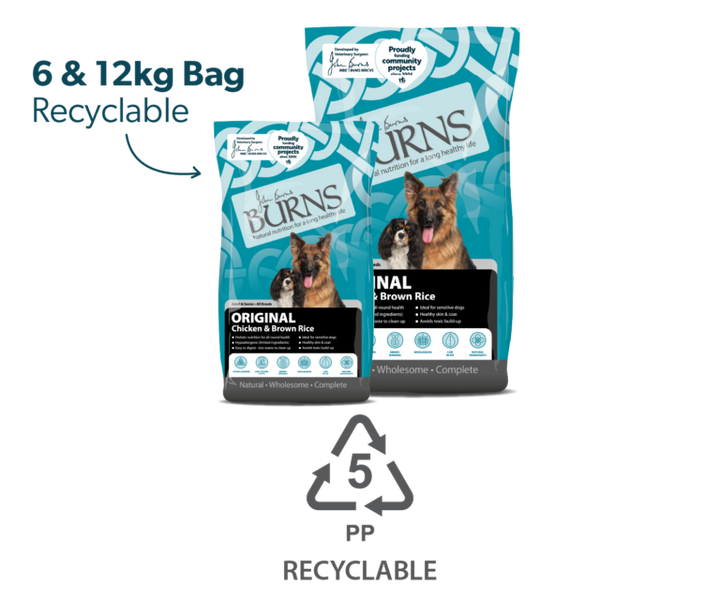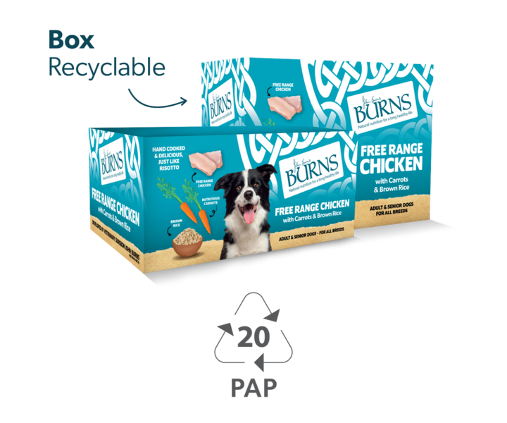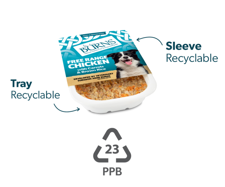 Several years back, we made a pivotal shift towards using 100% recyclable packaging for our dry food and treats. Recognising the profound impact even minor adjustments in everyday products can have on the environment, we’ve taken proactive steps to ensure our packaging is eco-friendly. While the packaging for Burns Wet Food comprises a recyclable plastic tray, a paper sleeve, and a cardboard box, we are actively exploring options to make the film lid recyclable as well. Keep scrolling for more information about how to recycle our packaging.